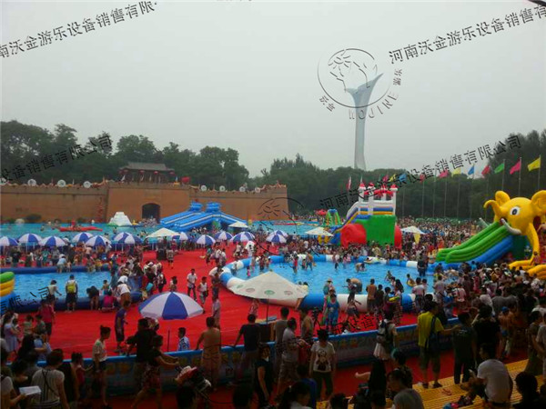 一般来说,移动水上乐园项目产品主要包括:支架水池、充气水池、充气水滑梯、水上冲关设备、水上浮具、水上休闲游乐设施等组合而成,投资者可以根据自己场地的大小来决定产品组合。另外,移动水上乐园的搭建也非常方便,河南沃金游乐会安排技术人员指导投资者搭建,投资者可以放心使用。
